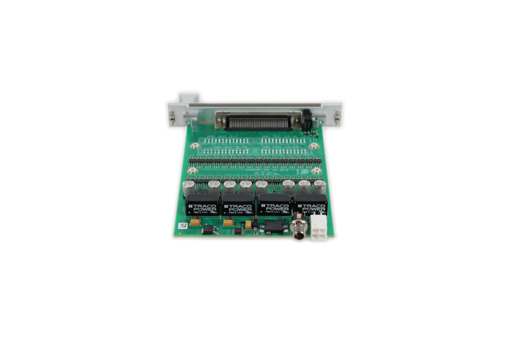 HVAmp 32ch is a universal module working as a 32-channel amplifier usable stand-alone or as a mezzanine for Fastino and Zotino. It allows amplify signal to +/-25 V output range in 4.8 MHz bandwidth with power limited by slew rate at the level 21 V/μs and total power consumption of 9W idle. The unit is based on LTC6090 or OPA462 amplifiers and allows connection via IDC or mezzanine connectors compatible with Zotino/Fastino. The module work is controlled by board and channel over-temperature protection circuits which disable high voltage or specific channels upon fault detection